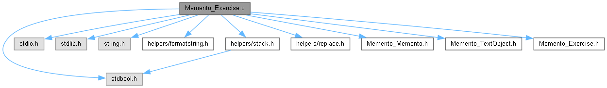 #include <stdbool.h>#include <stdio.h>#include <stdlib.h>#include <string.h>#include "helpers/formatstring.h"#include "helpers/stack.h"#include "helpers/replace.h"#include "Memento_Memento.h"#include "Memento_TextObject.h"#include "Memento_Exercise.h"