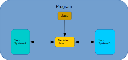 What this means is the mediator is a class that becomes the point of contact in a system, exposing the other entities only in the most abstract way possible, typically though numerical or string identifiers.