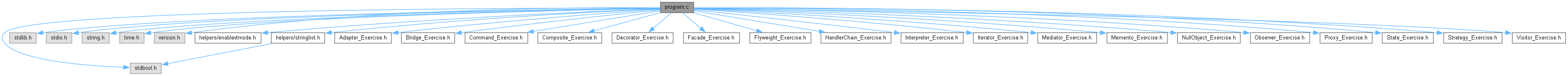 #include <stdbool.h>#include <stdlib.h>#include <stdio.h>#include <string.h>#include <time.h>#include <version.h>#include "helpers/enablevtmode.h"#include "helpers/stringlist.h"#include "Adapter_Exercise.h"#include "Bridge_Exercise.h"#include "Command_Exercise.h"#include "Composite_Exercise.h"#include "Decorator_Exercise.h"#include "Facade_Exercise.h"#include "Flyweight_Exercise.h"#include "HandlerChain_Exercise.h"#include "Interpreter_Exercise.h"#include "Iterator_Exercise.h"#include "Mediator_Exercise.h"#include "Memento_Exercise.h"#include "NullObject_Exercise.h"#include "Observer_Exercise.h"#include "Proxy_Exercise.h"#include "State_Exercise.h"#include "Strategy_Exercise.h"#include "Visitor_Exercise.h"